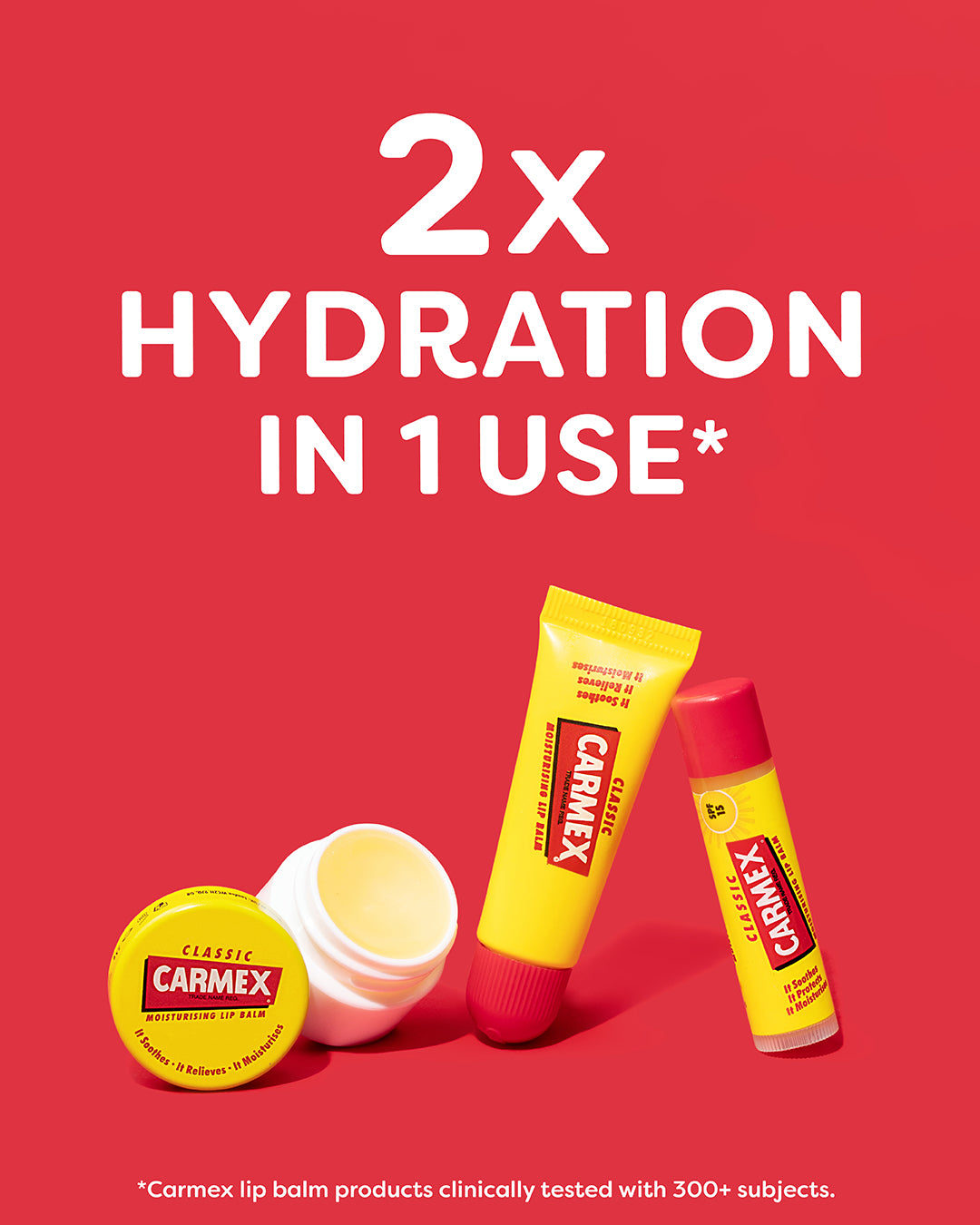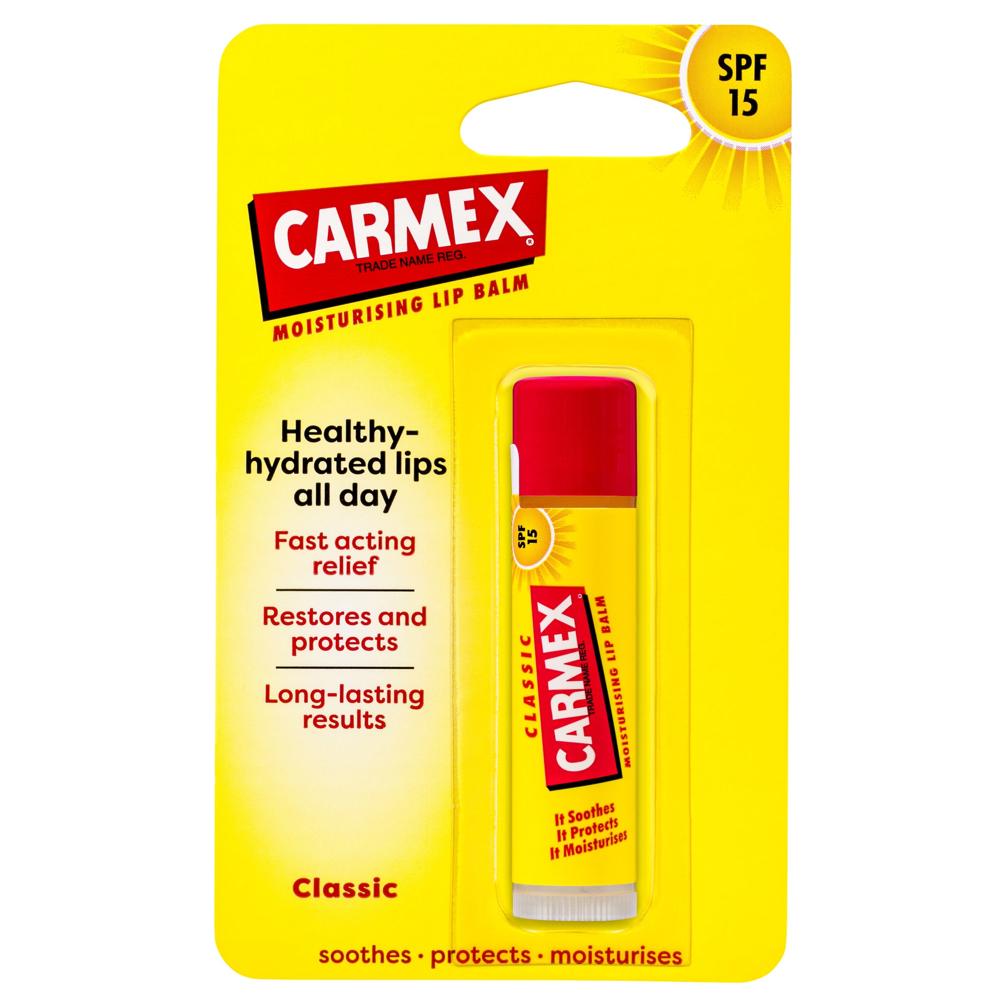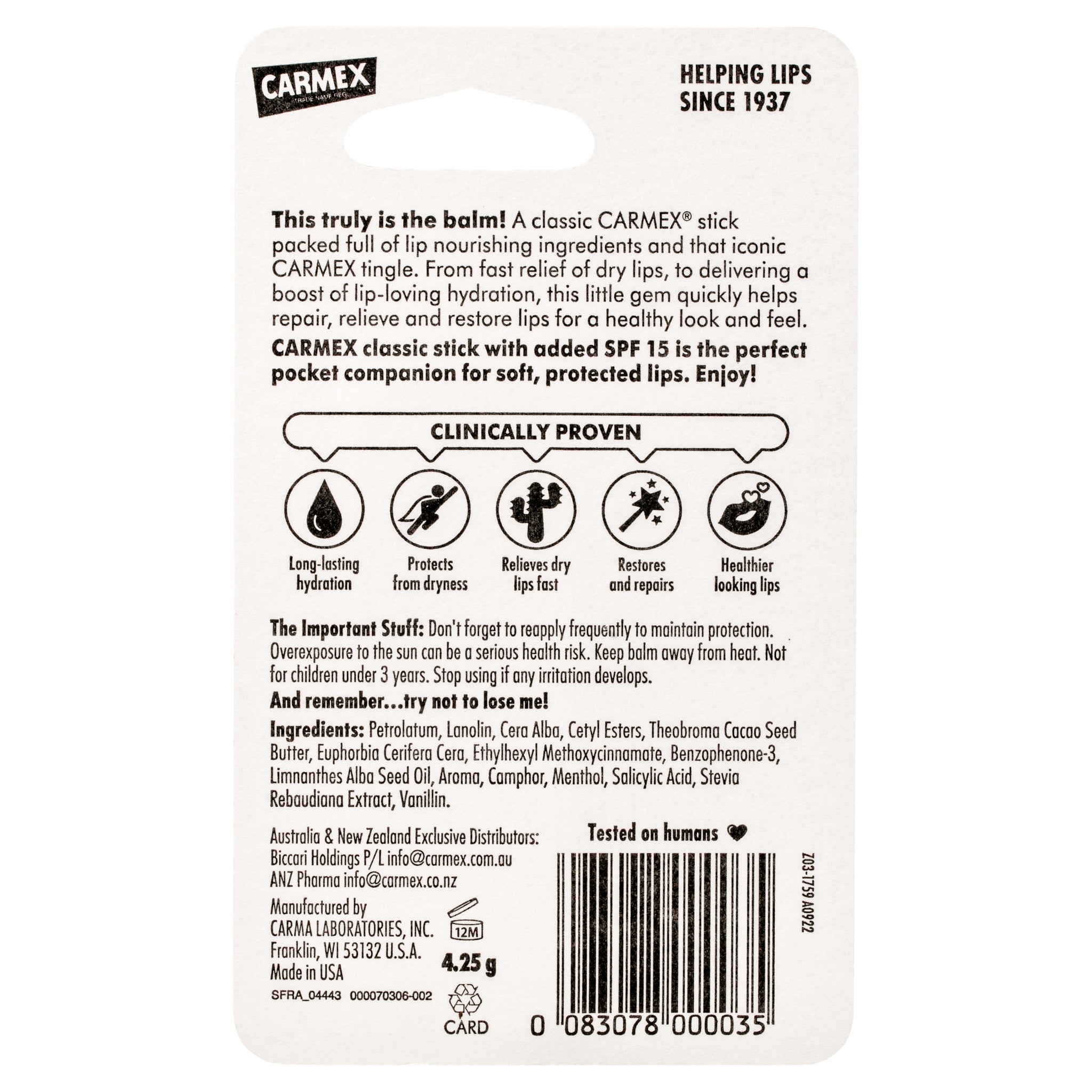 Healthy-hydrated lips all day. CARMEX classic stick with added SPF15 is the perfect pocket companion for soft, protected lips. ENJOY!